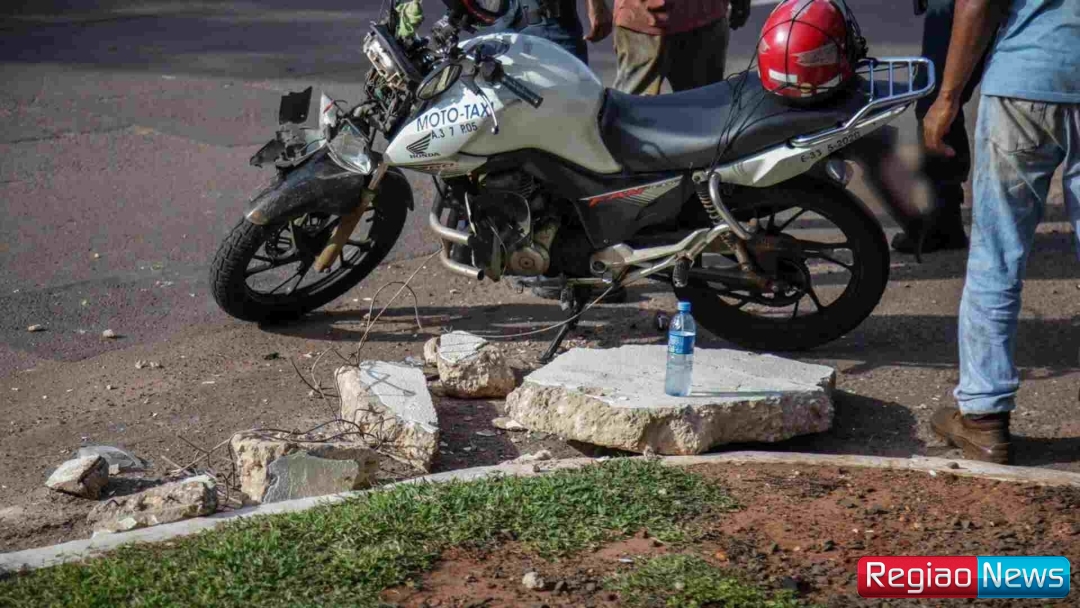 Devido a carga sem cobertura, um pedaço de concreto caiu e atingiu a parte da frente da motocicleta, momento em que o piloto do veículo caiu. Em seguida, o Corpo de Bombeiros foi acionado, realizou os primeiros atendimentos e deve encaminhar o mototaxista para uma unidade de saúde. Ele sofreu uma esfoliação na perna.