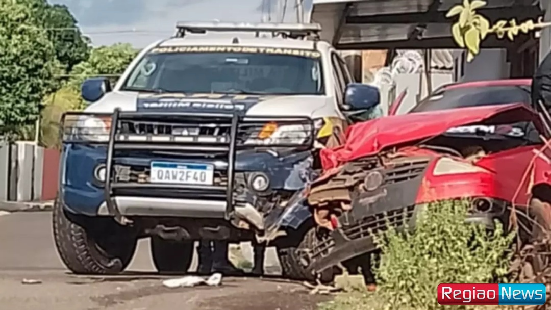 Acidente envolveu uma viatura do GTran (Grupamento de Trânsito) da Polícia Militar e um outro carro durante uma perseguição na tarde deste domingo (12) em Coxim, cidade a 252 quilômetros de Campo Grande. Os policiais perseguiam um motociclista que fazia manobras perigosas em vias públicas.