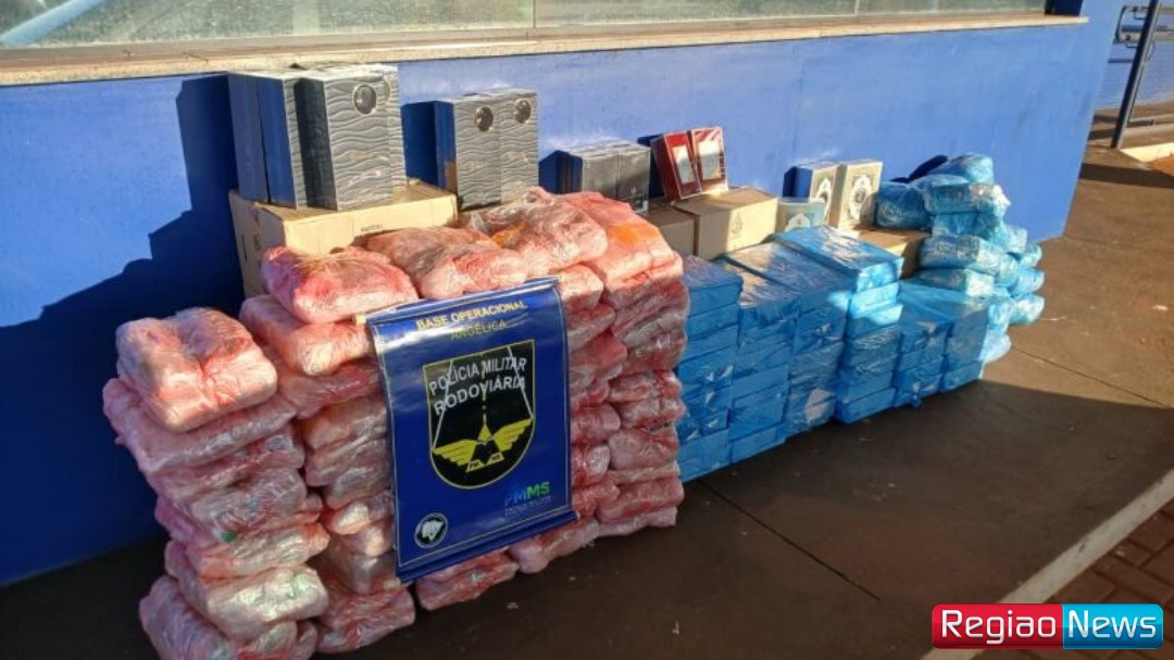 Perseguição na MS-145 termina com apreensão de R$ 124 mil em mercadorias contrabandeadas