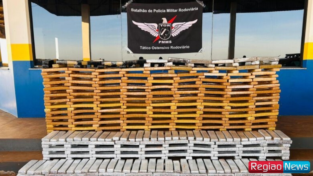 Policiais do Tático Ostensivo Rodoviário (TOR), do Batalhão da Polícia Militar Rodoviária, apreenderam 604 quilos de maconha na sexta-feira (22/8) em Maracaju, durante fiscalização na MS-162.