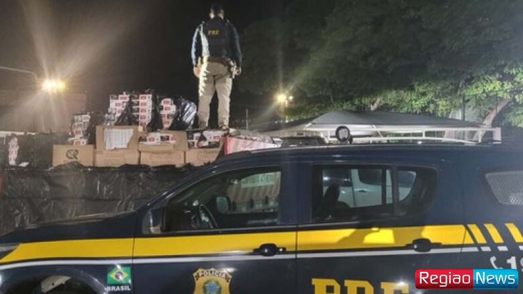 A Polícia Rodoviária Federal (PRF) apreendeu 129 mil maços de cigarros, na terça-feira (3/6), em Água Clara. A mercadoria estava em um caminhão, abordado na BR-262. Durante fiscalizações no veículo e na carga, os policiais encontraram várias caixas de cigarros de origem estrangeira.