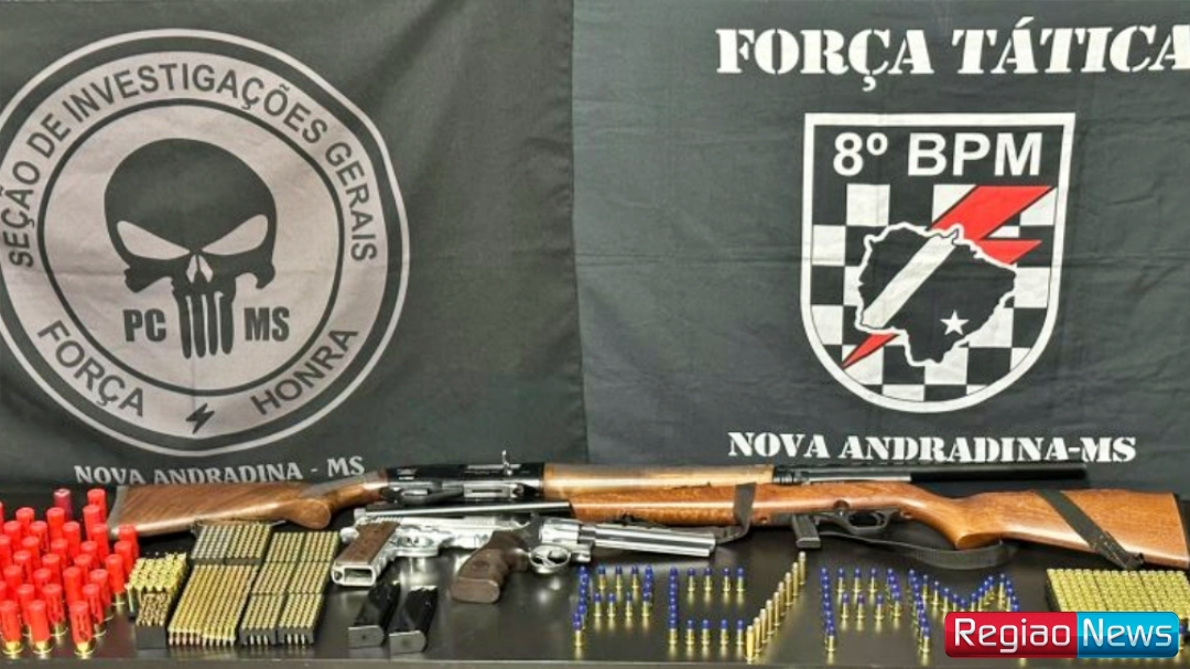 Em uma atuação conjunta, a Delegacia Polícia Civil de Nova Andradina e a Força Tática da Polícia Militar conseguiram recuperar diversas armas de fogo e munições que haviam sido furtadas no dia 9 de setembro de 2023, no município. Após o registro da ocorrência, as equipes policiais conseguiram rastrear o paradeiro das armas, levando à identificação dos suspeitos e à recuperação do armamento.