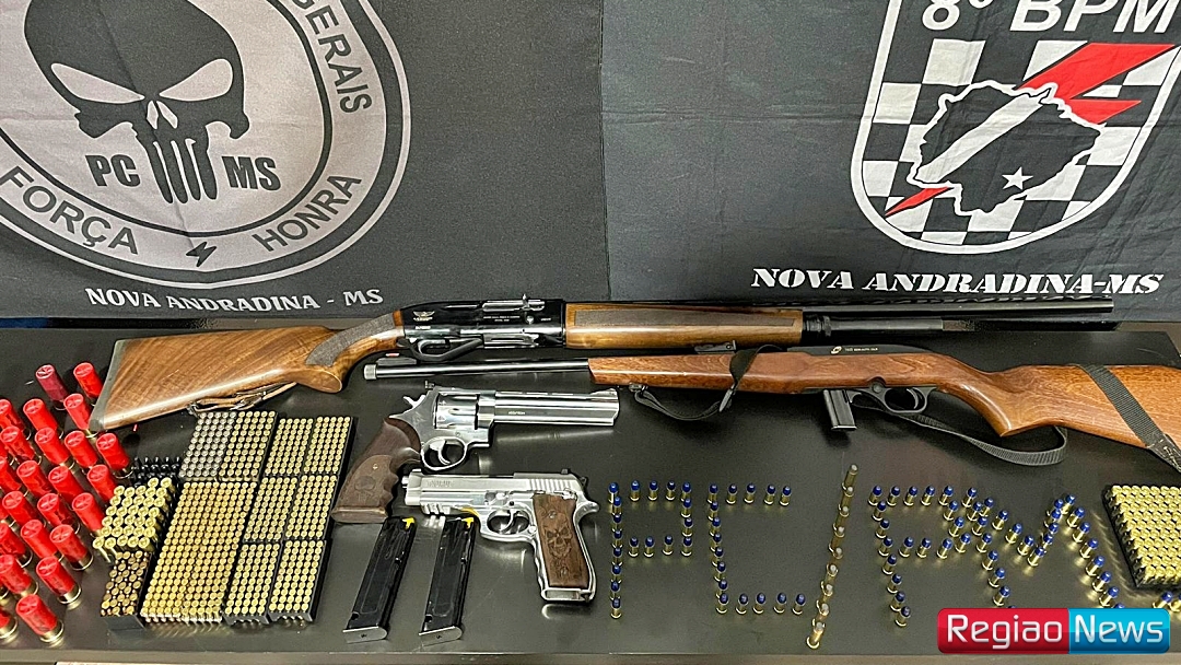 Polícia Civil e Polícia Militar recuperam armas de fogo e munições em Nova Andradina