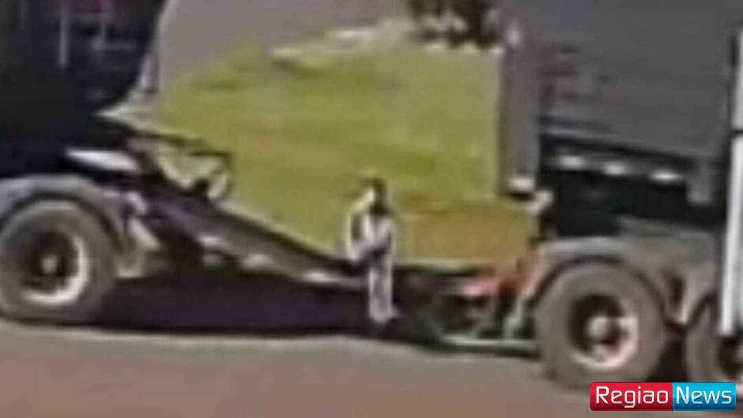 Ainda conforme as imagens, ao realizar uma conversão à direita, a carreta do tipo bitrem, (que possui um cavalo mecânico e duas semirreboques articulados, ligadas por um eixo), reduz a velocidade drasticamente, quase parando, para poder virar na via. Nesse momento, a criança correu em direção ao veículo e subiu no eixo que conectava as partes.