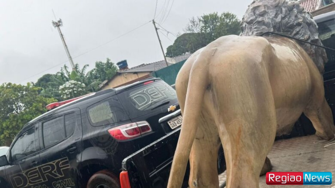 A investigação teve início a partir da análise de imagens e de outras informações relacionadas ao furto de uma estátua decorativa em formato de leão, subtraída de um estabelecimento comercial da Capital. No curso das diligências investigativas, os policiais também receberam denúncia anônima, a qual contribuiu para o avanço das apurações.