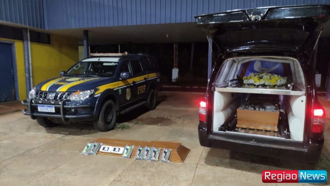Em uma ocorrência inusitada, a Polícia Rodoviária Federal (PRF) apreendeu, na noite desta quinta-feira (29), em Terenos (MS), 162 Kg de cocaína que estavam escondidos dentro de um caixão funerário.