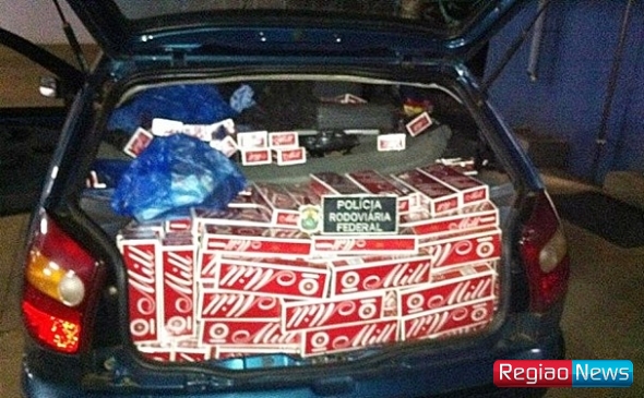 A PRF (Polícia Rodoviária Federal) apreendeu, por volta das 18h30 de segunda-feira (9), 10 mil maços de cigarro e dez quilos de agrotóxicos contrabandeados na BR-158, em Três Lagoas, a 338 quilômetros de Campo Grande.