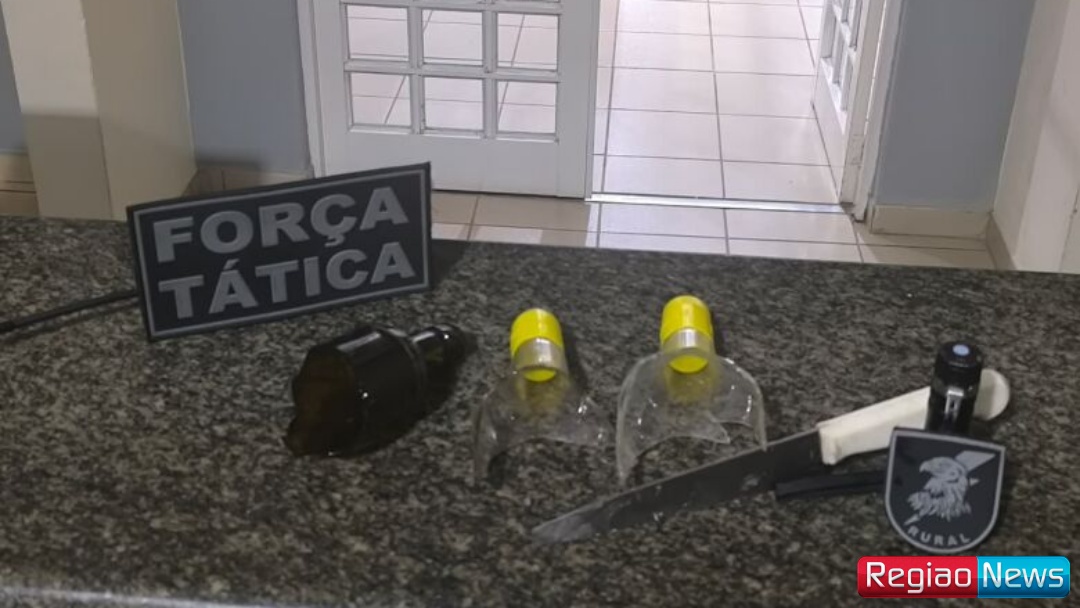 De acordo com as informações repassadas à Polícia Militar, um funcionário da pedreira estaria completamente descontrolado, promovendo depredações nos alojamentos, ameaçando colegas de trabalho e colocando em risco a integridade física de pessoas que residiam no local.