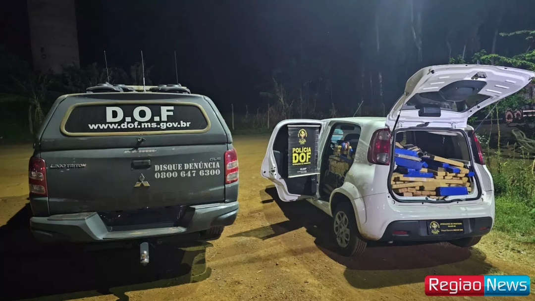 Policiais militares do DOF (Departamento de Operações de Fronteira) encontraram diversos tabletes de maconha e 2 quilos da supermaconha, em um veículo Fiat Uno abandonado na MS-164, em Maracaju, a 160 quilômetros de Campo Grande, na madrugada desta sexta-feira (12). Os ocupantes do carro fugiram.