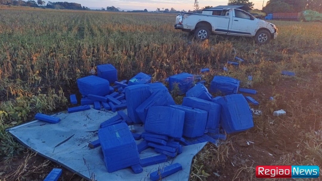 Ao chegarem no cenário do acidente, os policiais se depararam com uma caminhonete S10 branca tombada na margem da estrada, visivelmente danificada. O que inicialmente poderia ser interpretado como um simples acidente se transformou em uma cena reveladora. Espalhados ao redor do veículo, os agentes encontraram diversos fardos de maconha que totalizavam impressionantes uma tonelada, indicando que a carga era parte de uma operação de tráfico de drogas mais complexa.