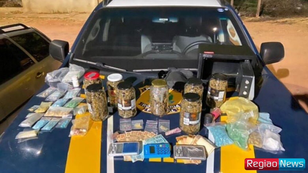 Após fiscalização no veículo, foram encontrados diversos tipos de drogas.