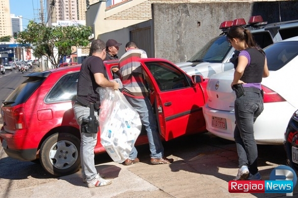 Há pouco, uma mulher e outro homem chegaram à sede da Corregedoria da Policia Militar, dentro de uma viatura policial, com cigarros e brinquedos apreendidos.