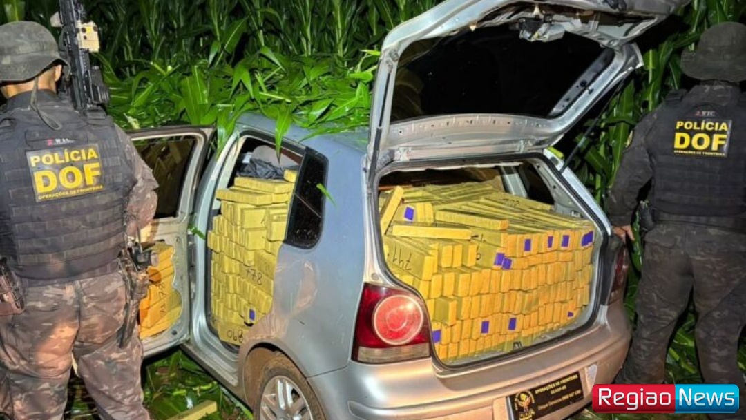 Policiais militares do DOF (Departamento de Operações de Fronteira) apreenderam no sábado (28), em Maracaju, 972 quilos de maconha que eram transportados em um veículo VW Polo. Na ação, ninguém foi preso.