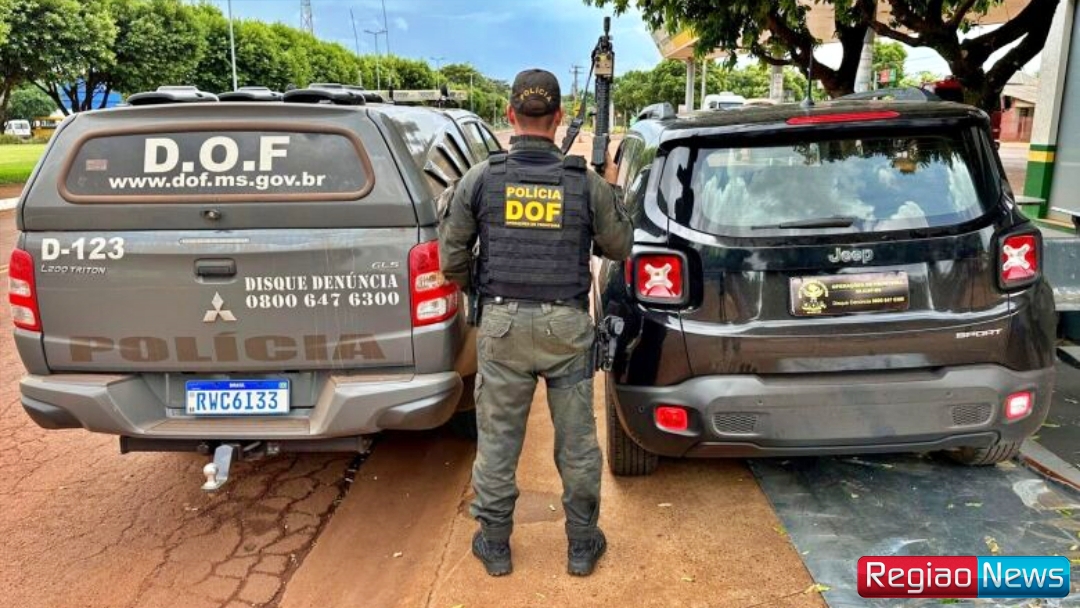 Policiais militares do DOF (Departamento de Operações de Fronteira) recuperaram na tarde desta sexta-feira, dia 09 de fevereiro, na área central da cidade de Laguna Carapã, um Jeep Renegade, de cor preta, com placas falsas e registro de roubo/furto na cidade de Brusque, em Santa Catarina, ocorrido em janeiro do corrente ano.