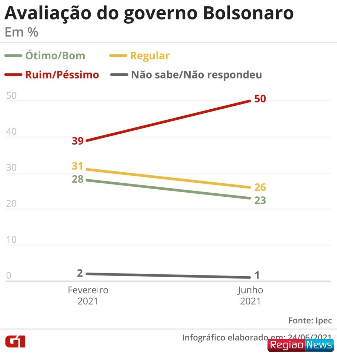A última pesquisa divulgada pelo Ipec sobre a aprovação do presidente foi feita em fevereiro de 2021. Os números levantados na época foram: