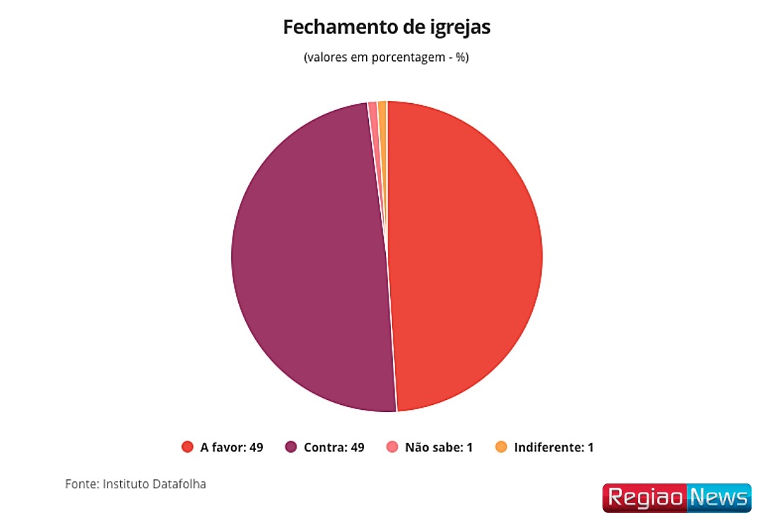 - Fechamento de igrejas: 49% a favor; 49% contra; não sabem, 1%; e indiferentes, 1%.