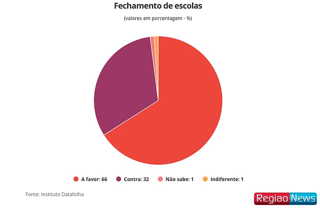 - Fechamento de escolas: 66% a favor; 32% contra; não sabem, 1%; e indiferentes, 1%.