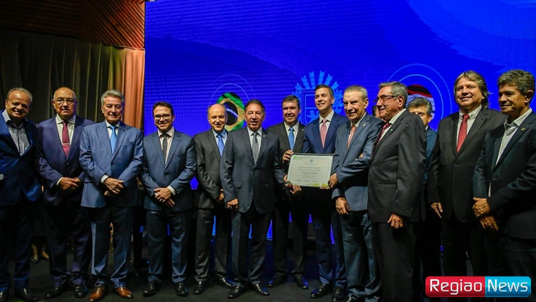 Em um momento considerado histórico para as relações entre Brasil e Paraguai, o presidente da Assembleia Legislativa de Mato Grosso do Sul, deputado estadual Gerson Claro, entregou nesta quinta-feira (2) o Título de Cidadão Sul-Mato-Grossense ao presidente paraguaio Santiago Peña. A honraria, proposta por Gerson Claro em coautoria com o deputado Paulo Corrêa, foi concedida durante um jantar de autoridades no Yotedi, em Campo Grande, oferecido pelo Governo do Estado em homenagem à visita do líder paraguaio.