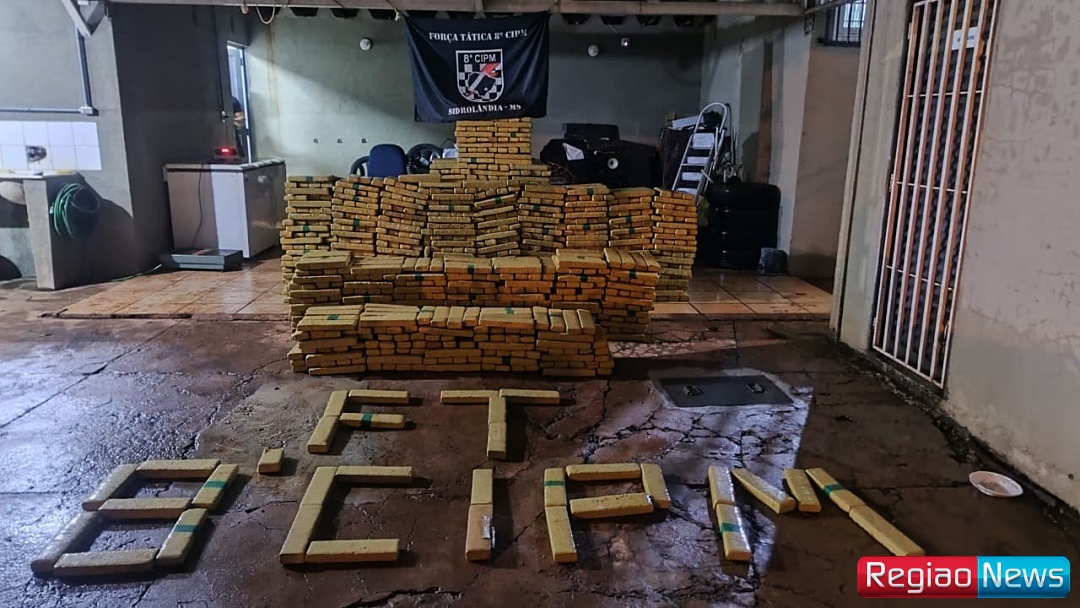 Policiais da Força Tática localizaram 2.078 tabletes de maconha, totalizando 1.877,4 quilos, escondidos em dois veículos estacionados na varanda do imóvel. Um dos carros, um Chevrolet Onix, apresentava sinais de adulteração nos identificadores e registro original no Estado de São Paulo.