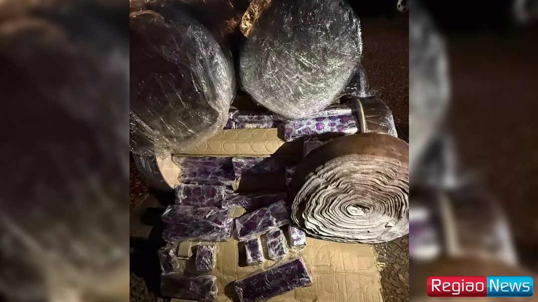 Questionado, o suspeito afirmou que transportava 700 aparelhos celulares embalados em tapetes automotivos e dentro de um ar-condicionado. No entanto, durante a vistoria, os agentes encontraram grande quantidade de maconha escondida nos tapetes e dentro do equipamento.