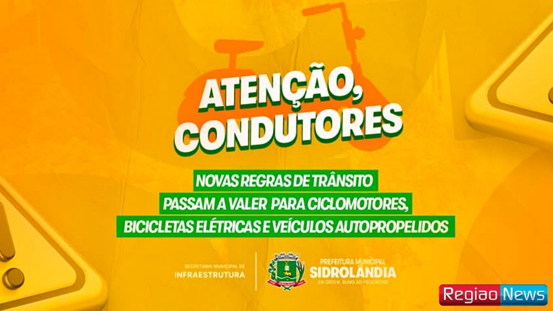 O Departamento de Trânsito da Prefeitura de Sidrolândia informa que, a partir de janeiro de 2026, entram em vigor novas regras nacionais para a circulação de ciclomotores, bicicletas elétricas e veículos autopropelidos.