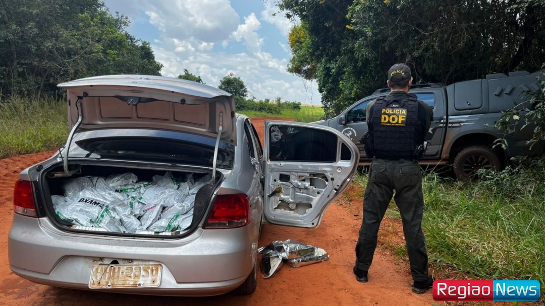 A apreensão ocorreu na rodovia MS-164, nas proximidades do Trevo de Santa Maria, no município de Maracaju. A equipe realizava um bloqueio policial quando deu ordem de parada ao condutor de um VW Voyage, de cor prata.