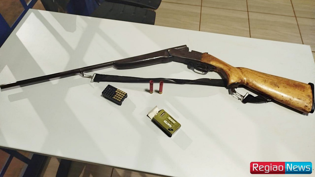 Durante diligências, os policiais localizaram uma espingarda e munições dentro do veículo do suspeito. O homem foi encontrado, recebeu voz de prisão e foi encaminhado, juntamente com a vítima, para atendimento médico.