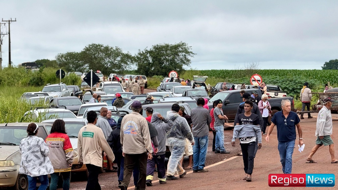 A passagem de veículos foi obstruída na altura do quilômetro 414, proximidades do trevo de acesso a MS-258, provocando um um congestionamento de 5 km.''