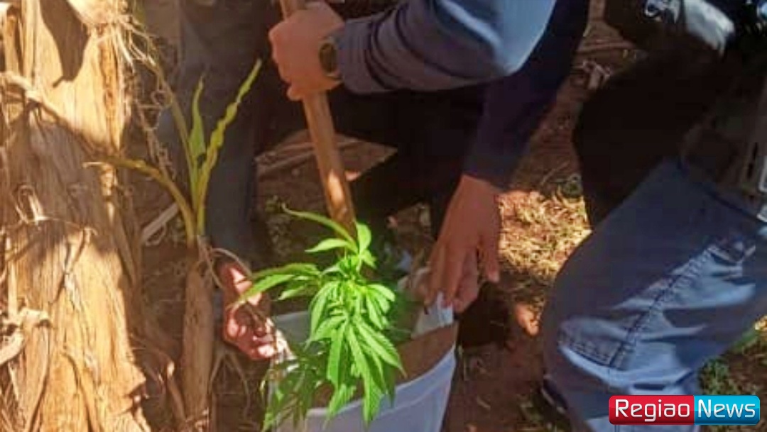 A Polícia Militar apreendeu a plantação de Cannabis sativa, e o suspeito foi conduzido à delegacia para que fossem tomadas as medidas legais cabíveis.