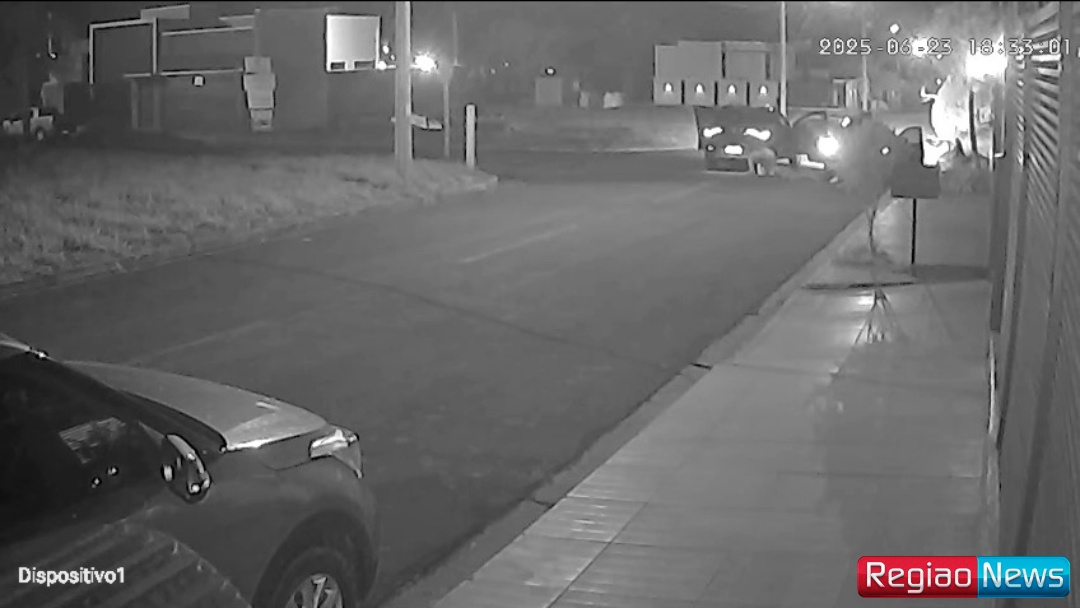 Câmeras de segurança instaladas em casas localizadas na Rua Nelson Fortunato Basso registraram o momento em que os investigadores da Denar, em um carro descaracterizado, interceptam um veículo Gol chumbo. Os ocupantes descem do carro e são rendidos pelos policiais logo em seguida.