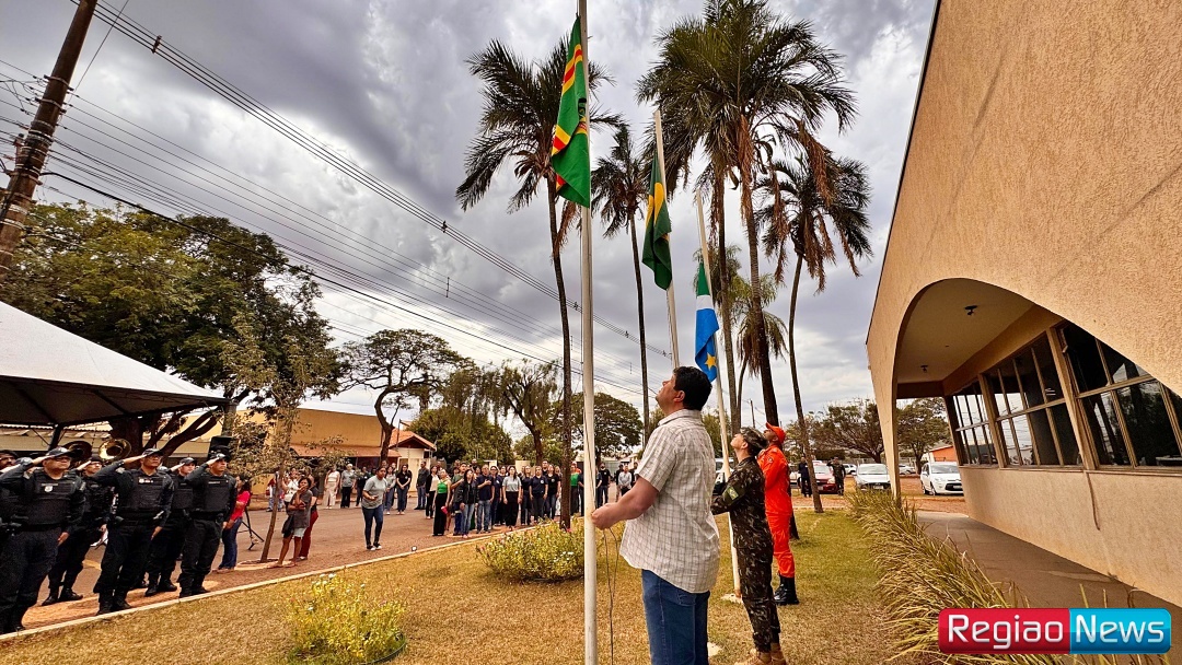 Sidrolândia abriu oficialmente nesta segunda-feira (1º) a programação da Semana da Pátria 2025. A cerimônia, realizada no Paço Municipal, foi marcada pelo hasteamento das bandeiras ao som da Banda Municipal e contou com a presença do prefeito Rodrigo Basso, autoridades civis e militares, servidores públicos, estudantes e do deputado estadual Renato Câmara, que prestigiou o ato cívico.