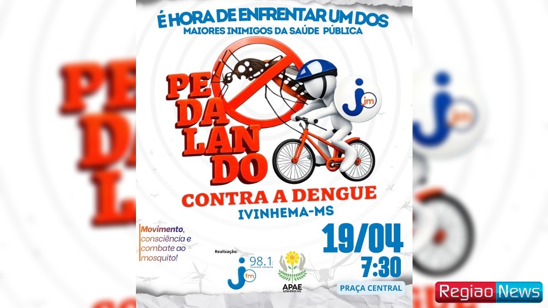 A cidade de Ivinhema recebe neste domingo (19), a partir das 7h30, na Praça Central, mais uma edição do projeto “Pedalando Contra a Dengue”, iniciativa que vem se consolidando como uma das mais relevantes ações de mobilização social no enfrentamento à doença no Mato Grosso do Sul. Criado em 2017 pela Rede Jota FM, o projeto surgiu em um cenário de crescimento dos casos de dengue na cidade de Aparecida do Taboado, quando o Estado enfrentava forte pressão sobre o sistema de saúde em razão da proliferação do mosquito Aedes aegypti.