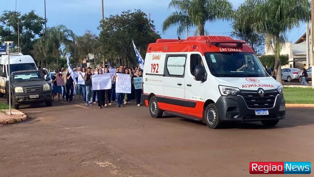 Durante o protesto, que contou com a participação de médicos, enfermeiros e profissionais administrativos, os manifestantes percorreram ruas da cidade, passaram em frente à Câmara Municipal e seguiram até a Unidade de Pronto Atendimento (UPA), acompanhando uma ambulância do Samu (Serviço de Atendimento Móvel de Urgência).