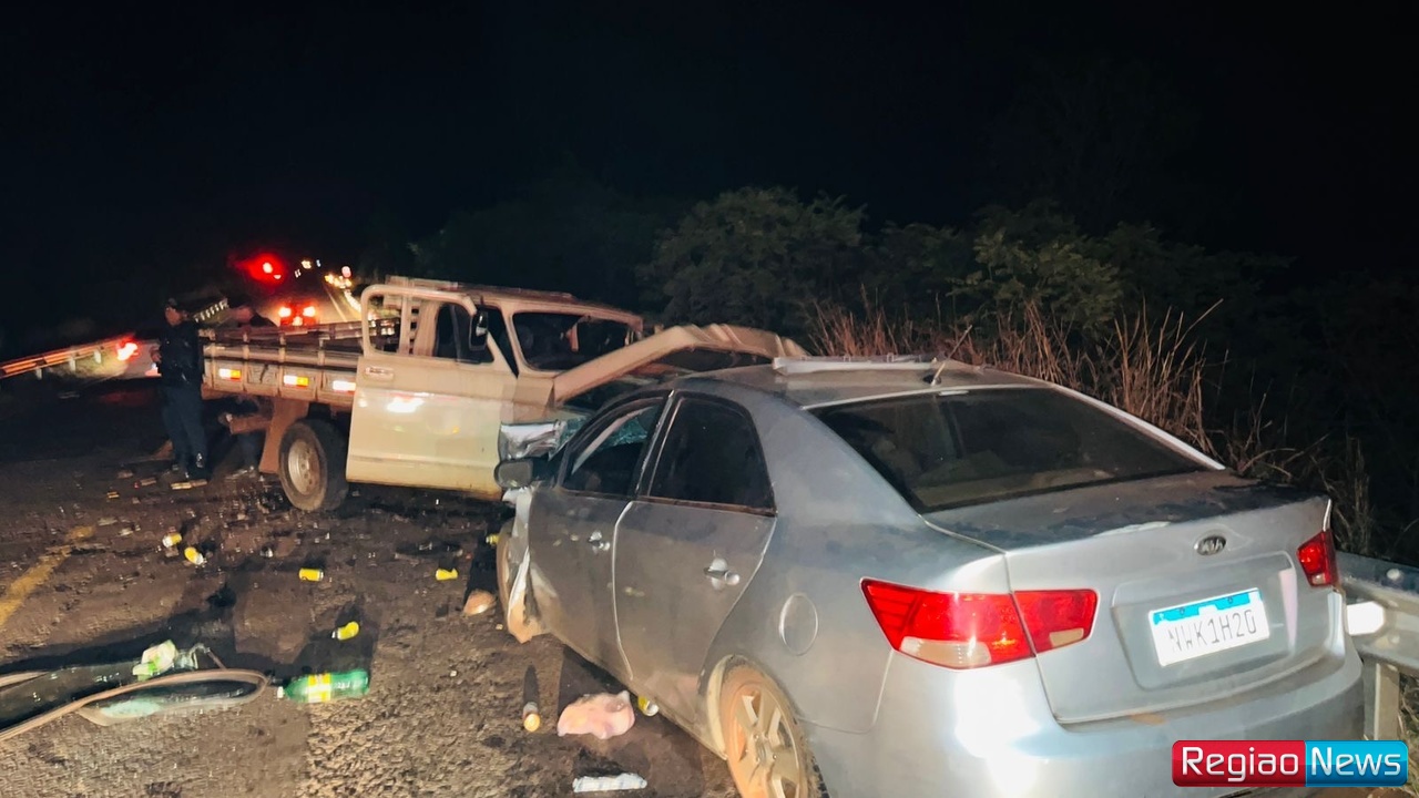Um grave acidente na noite deste sábado (13) deixou três mortos e quatro feridos na rodovia MS-162, trecho que liga Sidrolândia ao distrito de Quebra Coco. A colisão foi frontal, envolvendo um Kia Cerato de placa NWK1H20 e uma caminhonete Chevrolet C14.