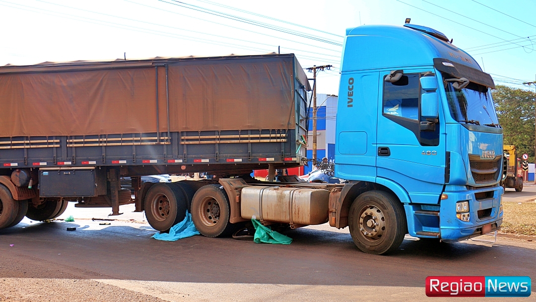 Ciclista morre atropelado por carreta na esquina da Dorvalino dos Santos com a Avenida Aroeira